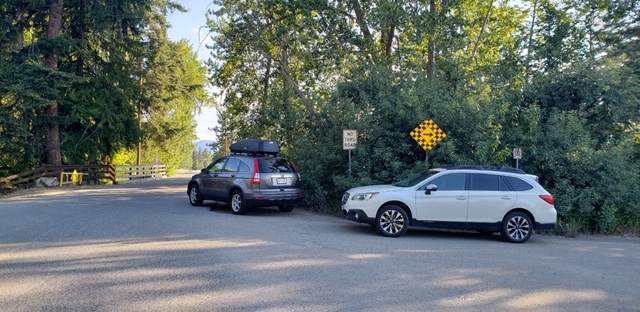 - The row of cars that park outside the park gate on the westside of Fintry Delta Road will see new No Parking signage. These parked cars impede traffic on this narrow, long steep road as they can not completely pull of the road without creating a potentially more dangerous fire hazard as hot exhaust and catalytic converters find the tall grass at the edge of the forested mountain. This parking is due to the $12.00 2nd car fee imposed by BC Parks and will continue to be a problem regardless of signage due to the current inability to enforce this regulation.